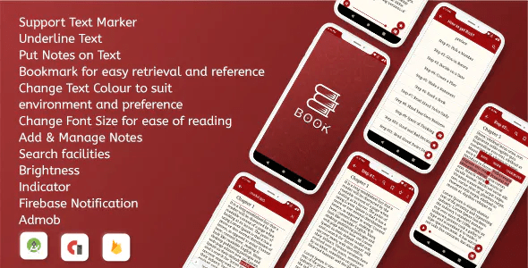 Just replace your data to the database and beautiful native android book app ready with the following feature.