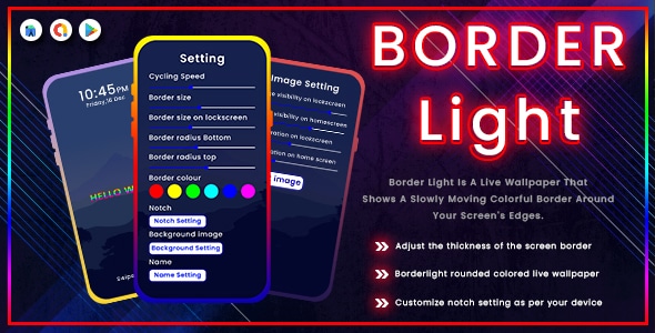 Border Edge Light – LED Color Live Wallpaper is show moving border on your mobile screen and display. Edge light border headlight is different form other regular live wallpapers. Personalization of your screen letting you to set notch live wallpaper with lighting screen borderlight live boundary lightbar with a single click.