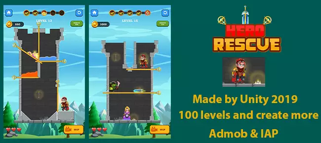 Hero Rescue – Adventure Puzzle Game is a complete project template that will help you create a great puzzle game. You only need change the graphic, advertising ID and publish on Google Play or App Store . The project includes many game features like Admob, Unity Ads. The project use Unity new version (2019.x) so your game has highest performance and support all mobile device generation
