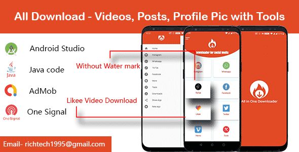 Insta,TikTok,FB,Whatsapp,Twitter Saver With editing tools – firebase| Admob | Onesignal app allow you to download