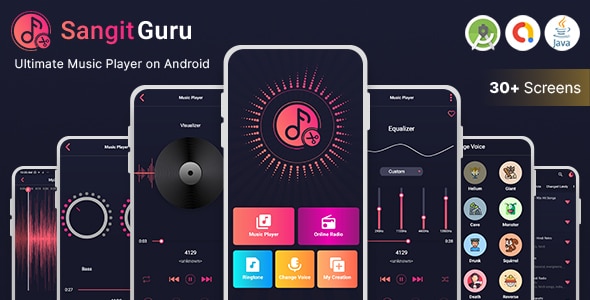 SangitGuru with built-in powerful feature like Music Player with equalizer, Radio Streaming, Voice change effect and ringtone maker.